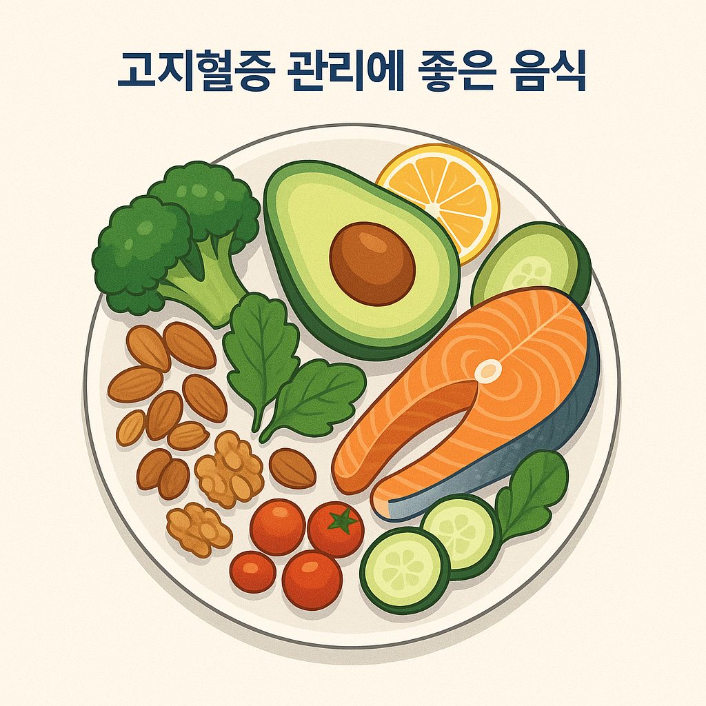 고지혈증을 관리하기 위해서는 올바른 식습관과 식단 구성이 중요합니다. 불포화지방산이 풍부한 연어, 고등어, 참치 같은 등푸른 생선은 일주일에 2~3회 이상 섭취하는 것이 좋습니다. 아몬드, 호두 같은 견과류도 적당량 섭취하면 나쁜 콜레스테롤을 낮추고 혈관 건강에 도움이 됩니다. 올리브오일, 아보카도는 좋은 지방의 공급원으로 혈중 지질 개선에 효과적이며, 귀리, 보리, 렌틸콩 같은 곡물은 식이섬유가 풍부해 콜레스테롤 배출을 촉진합니다. 반면, 트랜스지방, 포화지방, 과도한 당분이 포함된 가공식품, 튀김, 패스트푸드는 반드시 섭취를 제한해야 합니다.